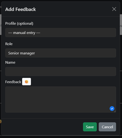 Note: You can also create feedback without selecting a profile.