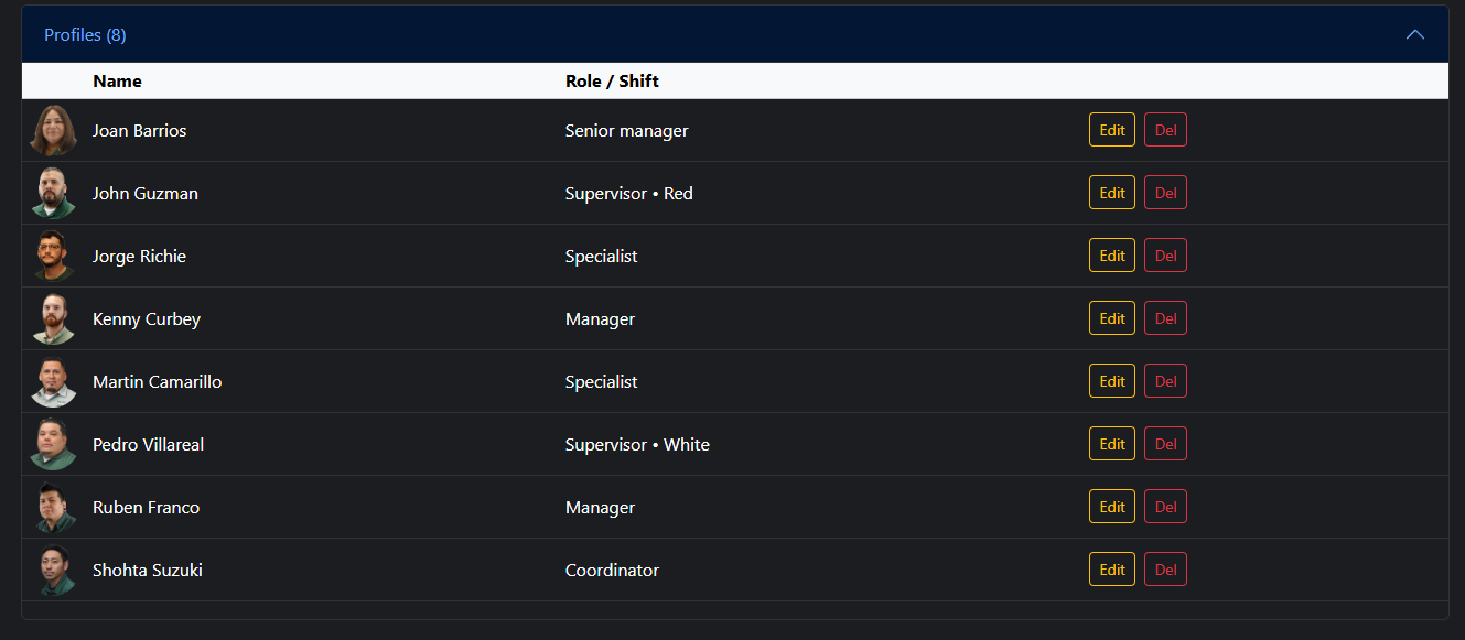 The Profile accordion contains the active profiles. You can edit profiles within that section.