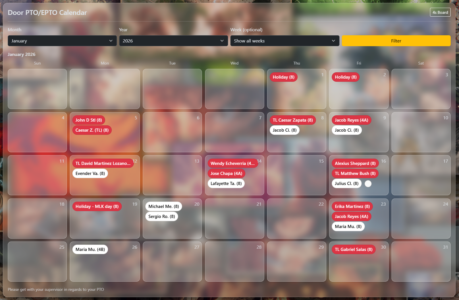 Your team members can filter by Month and year.