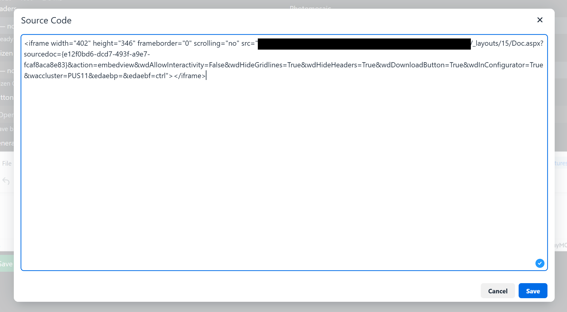 Paste the copied embed code into the appropriate Excel Insert field on your 4S Board.