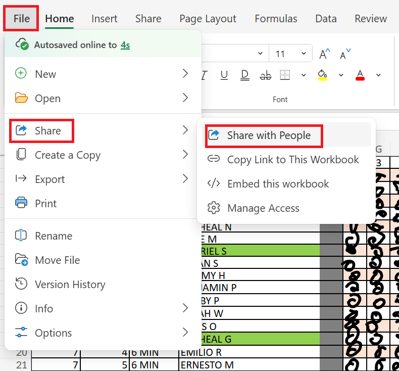 Go to File → Share → Embed this workbook.